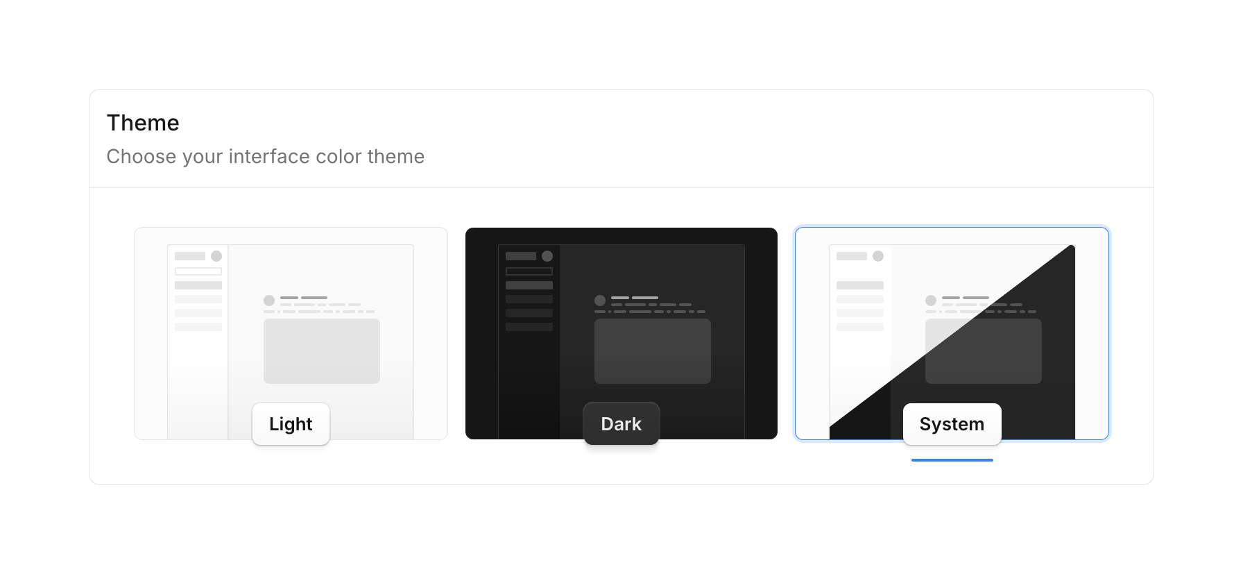 More Theme settings UI component examples