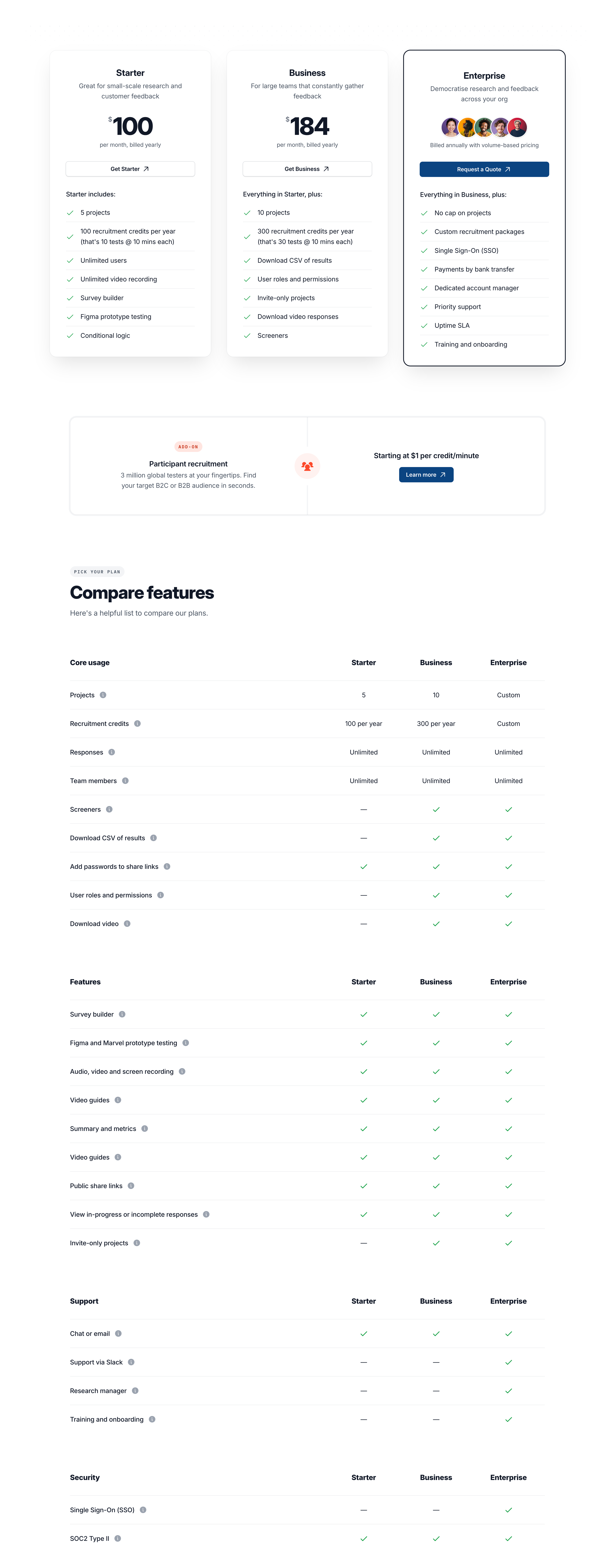 Pricing section