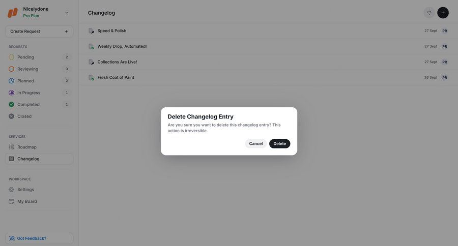 Changelog (Product) page examples
